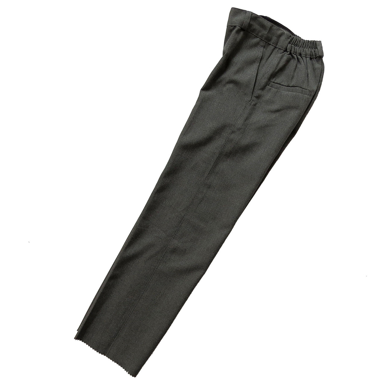 Брюки для хлопчика. На поясі ззаду вставлена гумка, застібка блискавиці та гудзика. Брюки внизу не підшиті (можна зробити потрібну довжину). Склад: 65% бавовна, 35% поліестер.