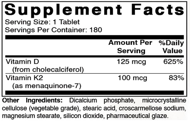 Best Naturals MK-7 Vitamin K2 100 mcg with Vitamin D3 180 tablets