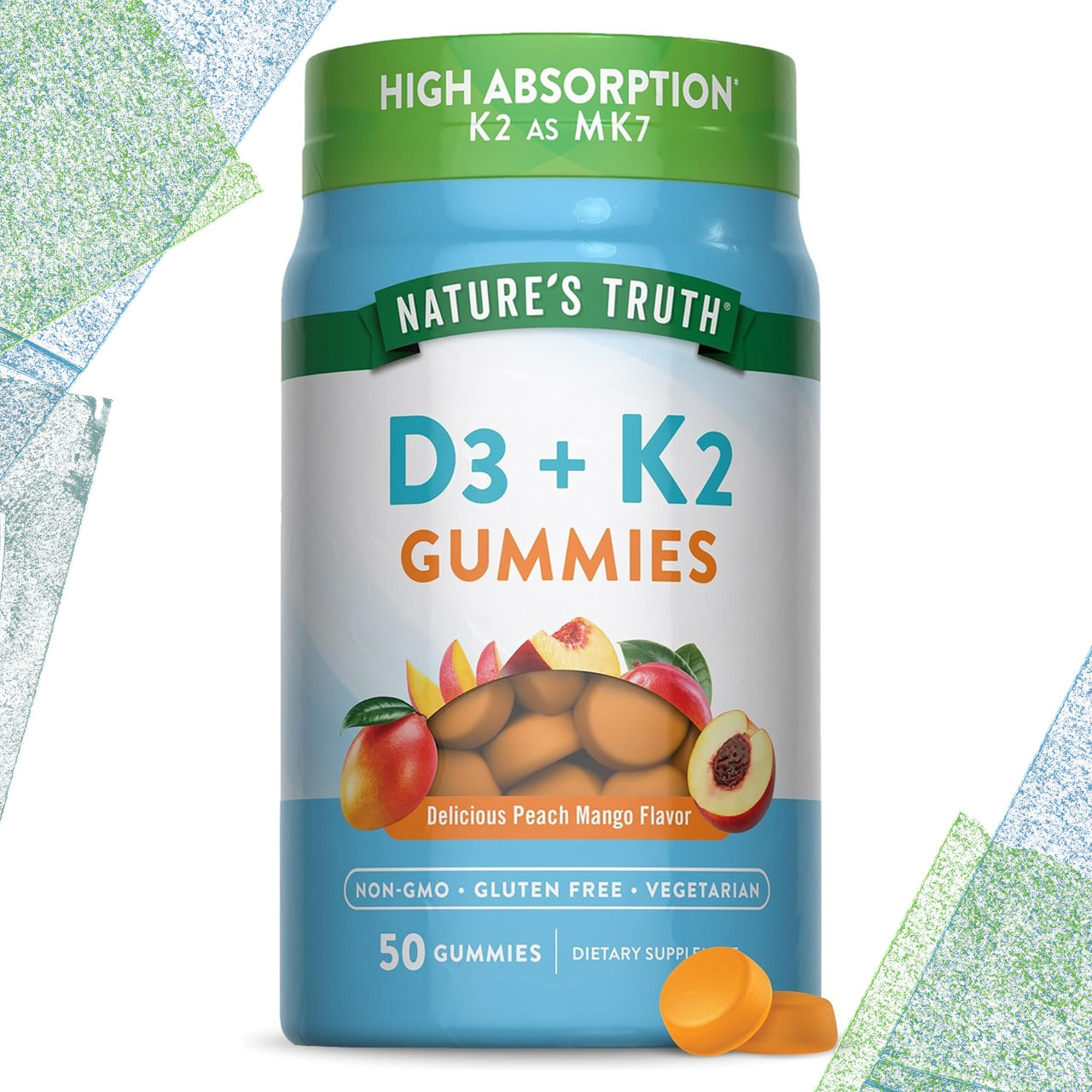 Nature's Truth D3 + K2 Complex Gummies Peach Mango Flavor 50 gummies